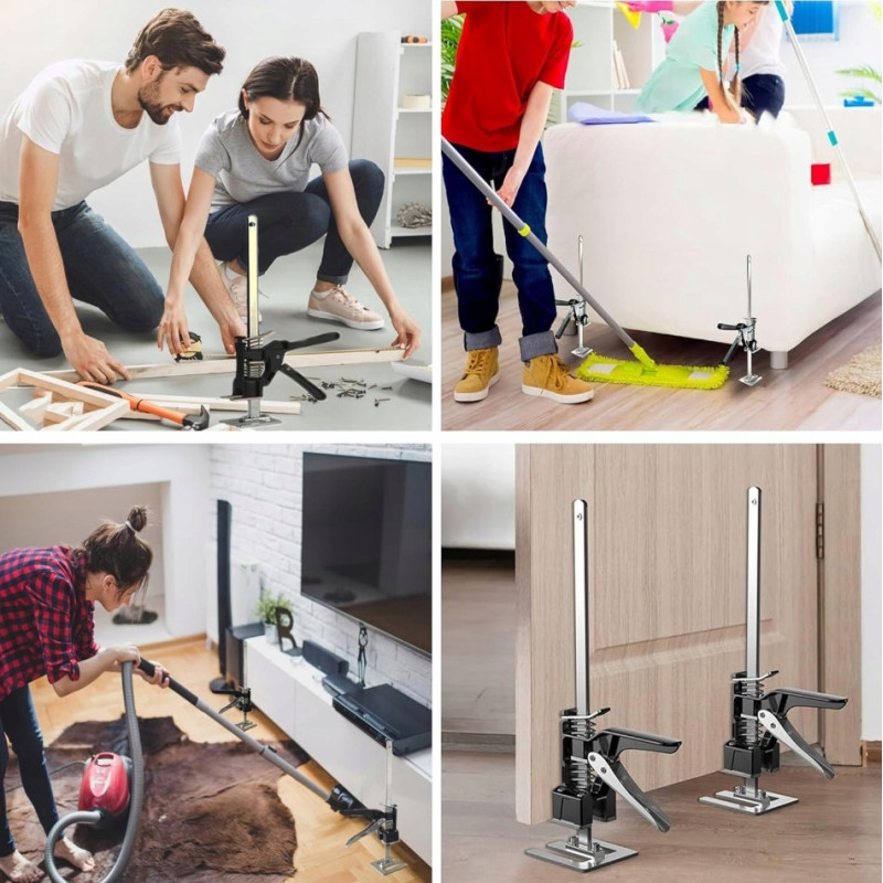 Dzięki niemu z łatwością uniesiesz ciężkie przedmioty, ustawisz je z precyzją do 1 mm, wypoziomujesz pralkę, zainstalujesz drzwi, czy posprzątasz pod szafką — bez potrzeby pomocy drugiej osoby.