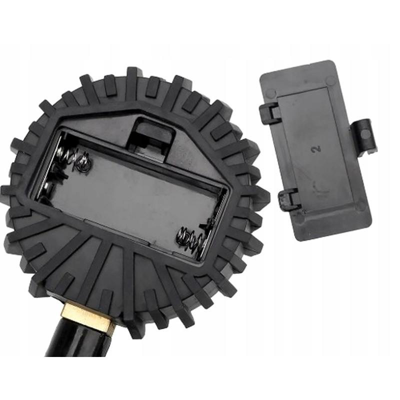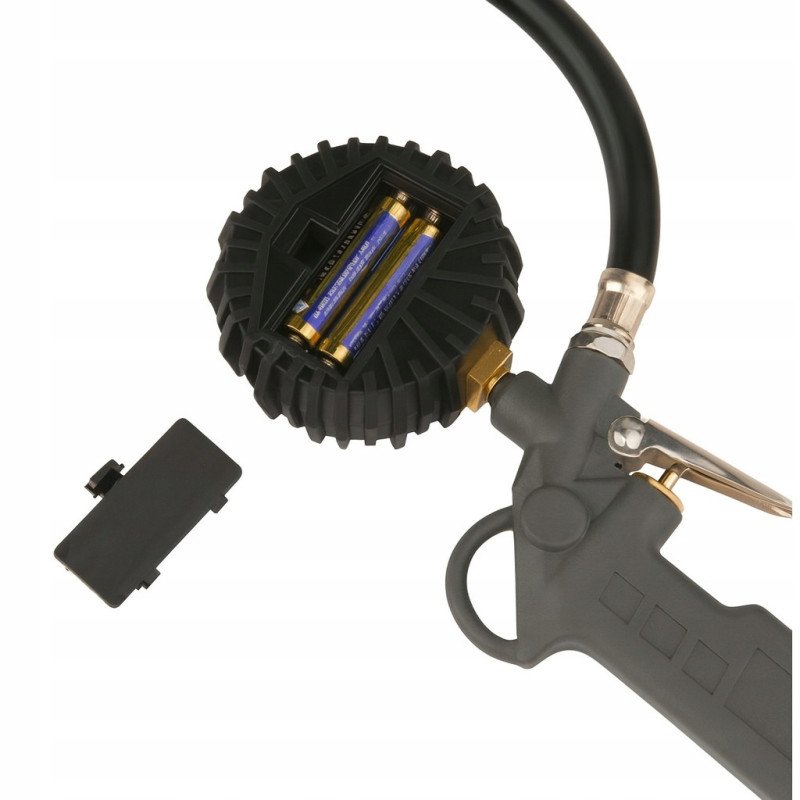 Cyfrowy wyświetlacz LCD zapewnia dokładny odczyt, a gumowa osłona chroni manometr przed uszkodzeniami. Dzięki ergonomicznemu kształtowi, solidnej konstrukcji i uniwersalnemu zastosowaniu, urządzenie sprawdzi się zarówno w warsztacie, jak i w garażu.