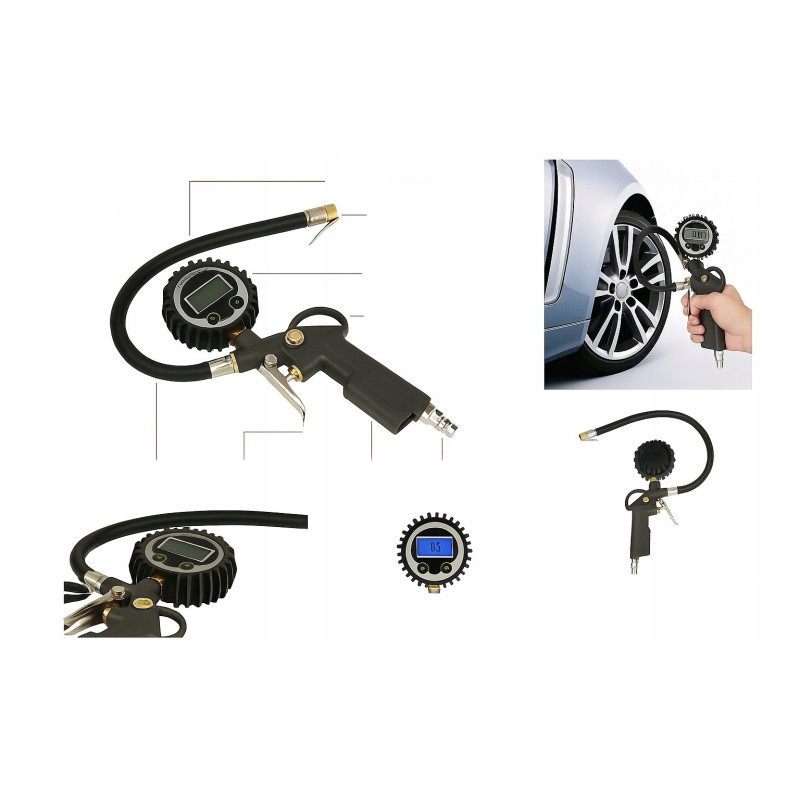 Pistolet Cyfrowy Pompka do Pompowania Kół Opon Wyświetlacz Manometr LCD